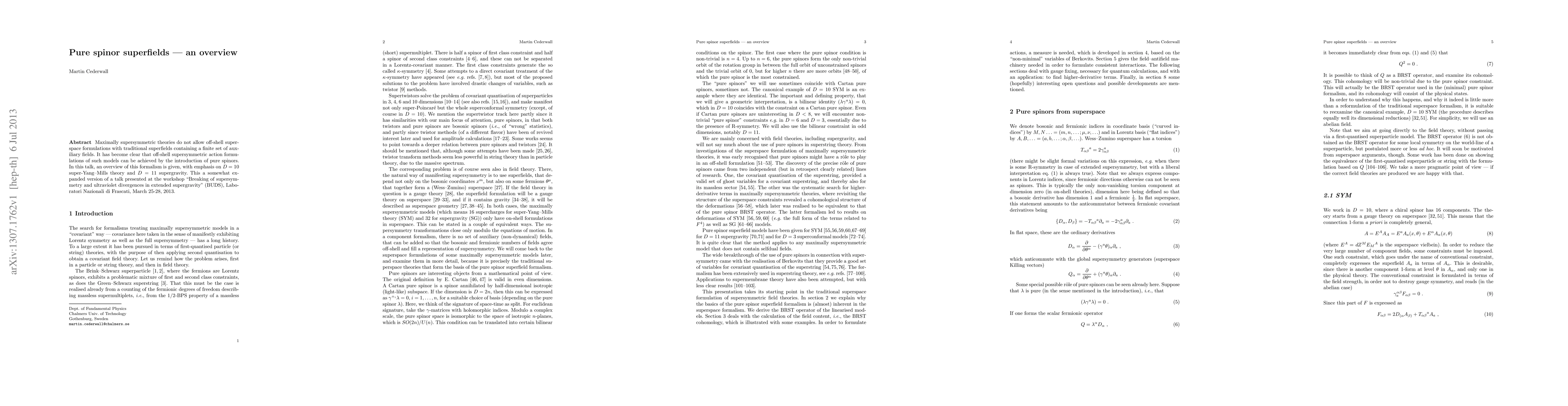 Maximally supersymmetric theories do not allow off-shell superspace formulations with traditional superfields containing a finite set of auxiliary fields. It has become clear that off-shell supersymmetric action formulations of such models can be achieved by the introduction of pure spinors. In this talk, an overview of this formalism is given, with emphasis on D=10 super-Yang-Mills theory and D=11 supergravity. This a somewhat expanded version of a talk presented at the workshop "Breaking of supersymmetry and ultraviolet divergences in extended supergravity" (BUDS), Laboratori Nazionali di Frascati, March 25-28, 2013.