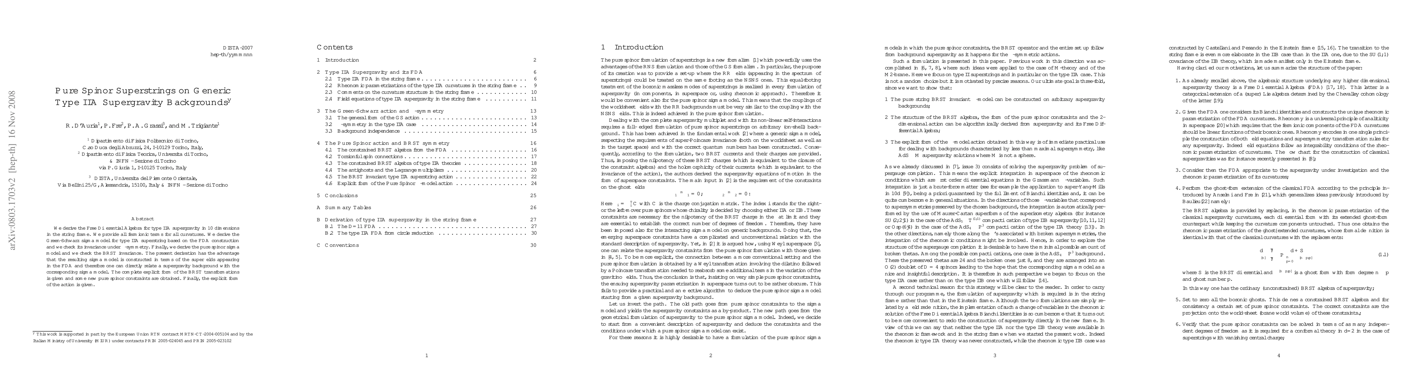 The paper presents a derivation of Free Differential Algebra for 10D type IIA supergravity, including fermionic terms for all curvatures. It constructs Green-Schwarz and pure spinor sigma models based on this FDA, checking their invariance under kappa-symmetry and BRST transformations respectively. The method establishes a direct link between supergravity backgrounds and corresponding sigma models with new pure spinor constraints, providing explicit forms for transformations and actions.