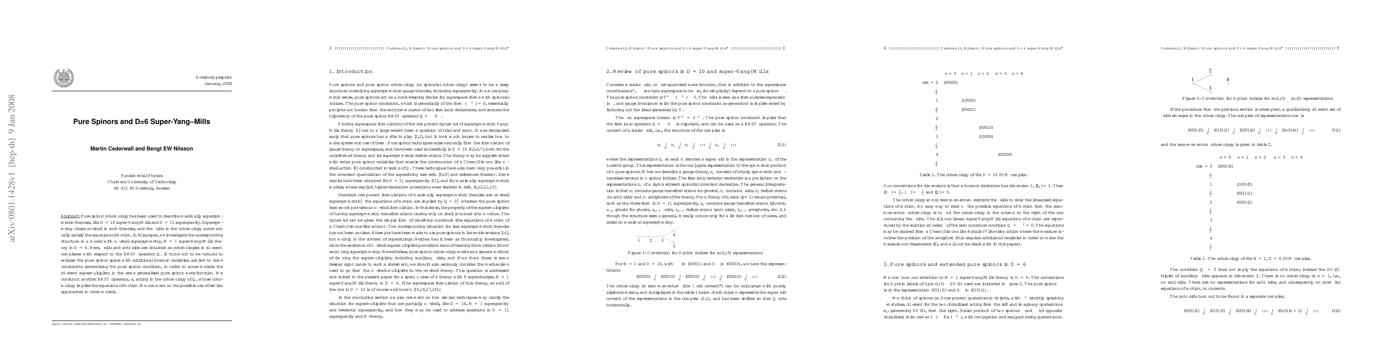 This paper investigates the pure spinor cohomology in D=6 N=1 super-Yang-Mills theory, extending the pure spinor space to incorporate additional bosonic variables and constraints to fit different supermultiplets. It constructs a new BRST operator, s, whose cohomology enforces the equations of motion.