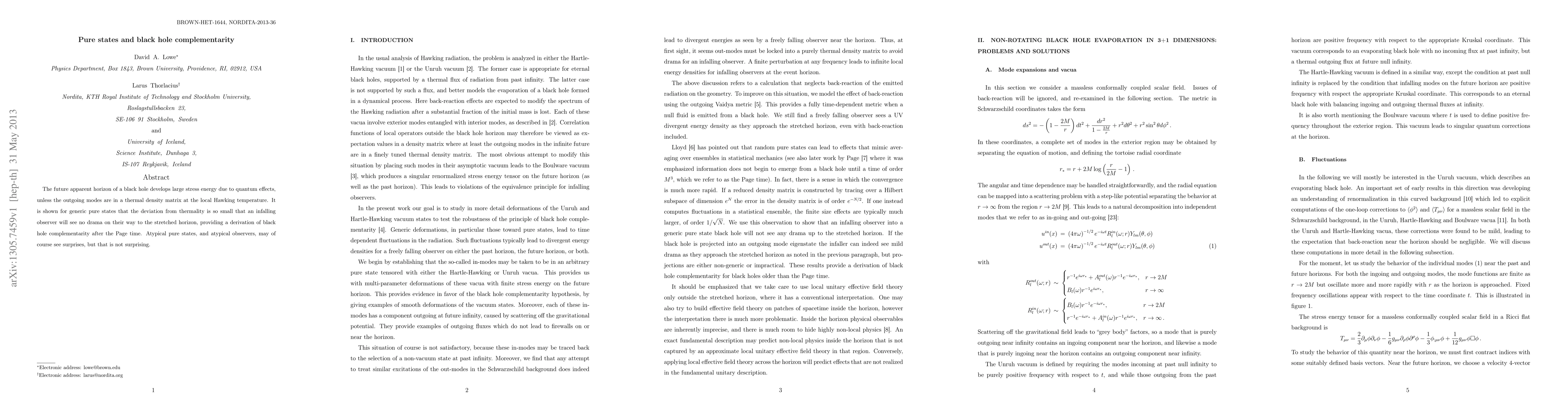 The future apparent horizon of a black hole develops large stress energy due to quantum effects, unless the outgoing modes are in a thermal density matrix at the local Hawking temperature. It is shown for generic pure states that the deviation from thermality is so small that an infalling observer will see no drama on their way to the stretched horizon, providing a derivation of black hole complementarity after the Page time. Atypical pure states, and atypical observers, may of course see surprises, but that is not surprising.