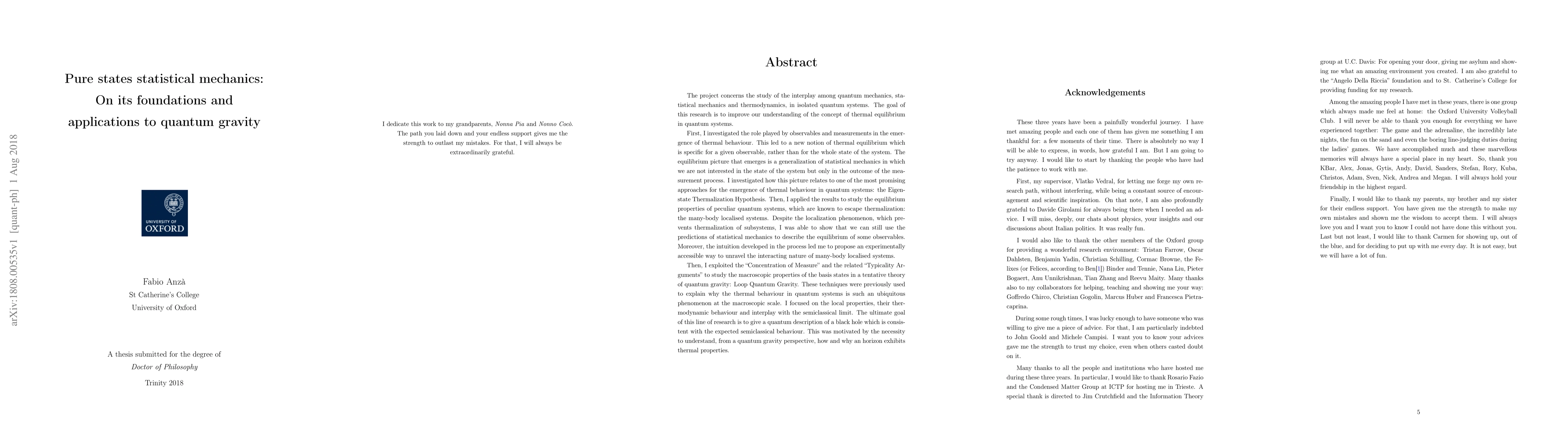 This paper explores the foundations of statistical mechanics in quantum systems, proposing a new notion of thermal equilibrium specific to observables rather than the entire system. It applies these insights to many-body localised systems and uses the "Concentration of Measure" phenomenon to investigate the macroscopic properties of Loop Quantum Gravity, aiming to understand the thermal behaviour of classical horizons from a quantum gravity perspective.