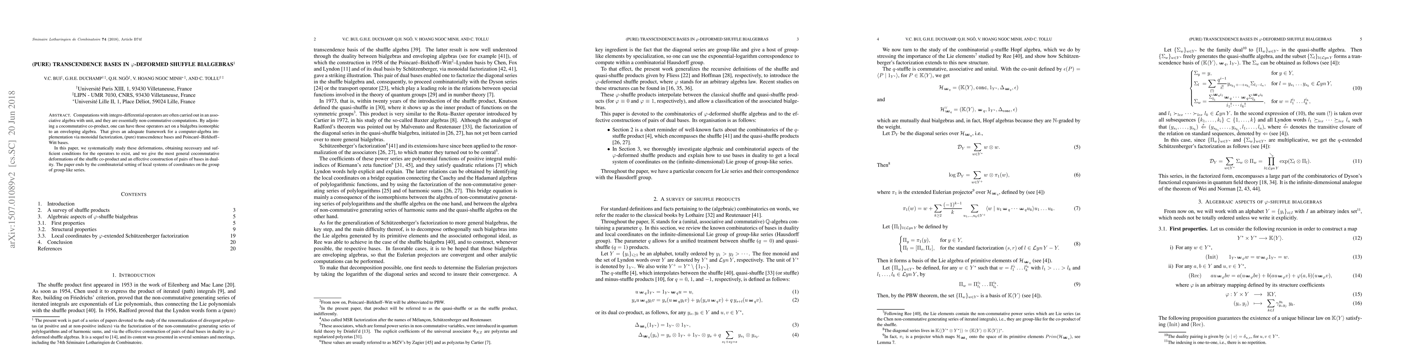 This paper systematically studies cocommutative deformations of shuffle co-products in bialgebras, providing necessary and sufficient conditions for operators' existence. It also presents a method for constructing dual basis pairs and introduces a combinatorial setting for local systems of coordinates on group-like series.