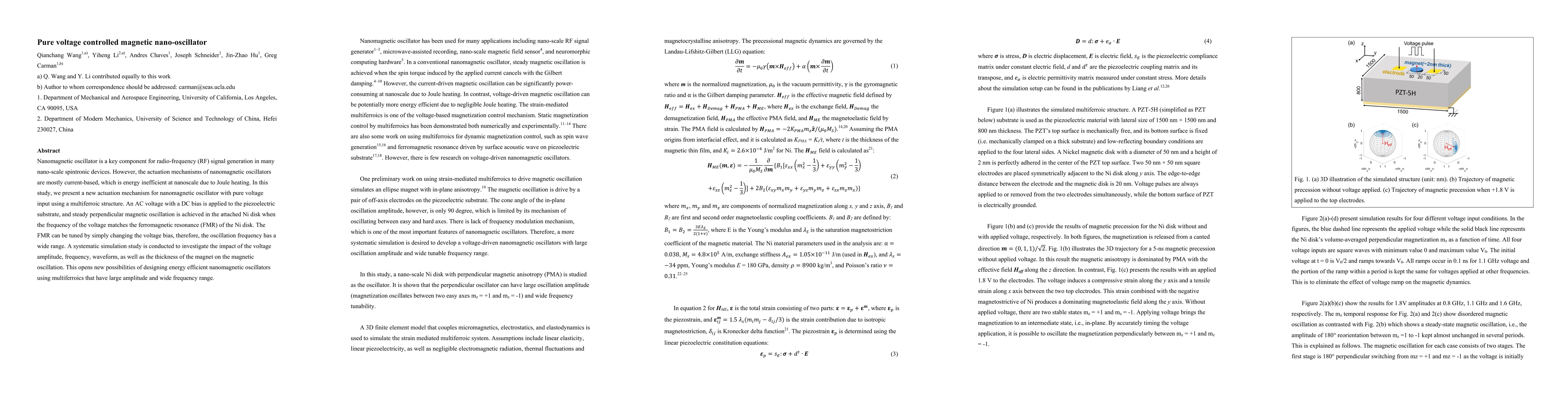 Researchers have developed a nanomagnetic oscillator that uses pure voltage input instead of current, which is more energy efficient at the nanoscale. This innovation opens up new possibilities for designing energy-efficient nanomagnetic oscillators using multiferroic materials with large amplitude and wide frequency range.