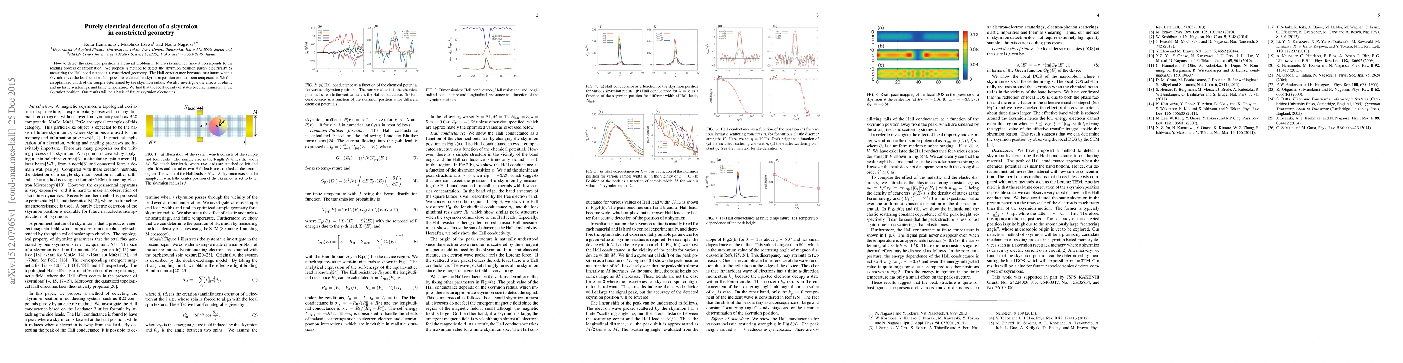This paper proposes an electrically detectable method for skyrmion position in constricted geometry using Hall conductance, achieving maximum conductance when a skyrmion is at the lead position. The technique is feasible at room temperature and provides a basis for future skyrmion electronics.