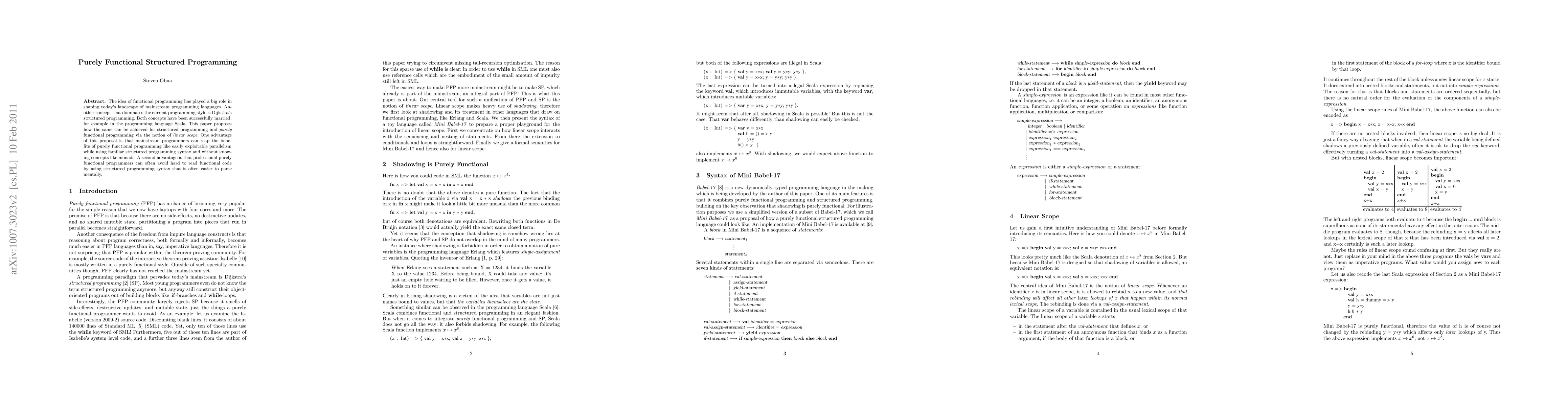 This paper explores integrating purely functional programming with structured programming through the concept of linear scope, allowing mainstream programmers to leverage parallelism without learning complex functional concepts, while also enabling functional programmers to use familiar structured programming syntax.