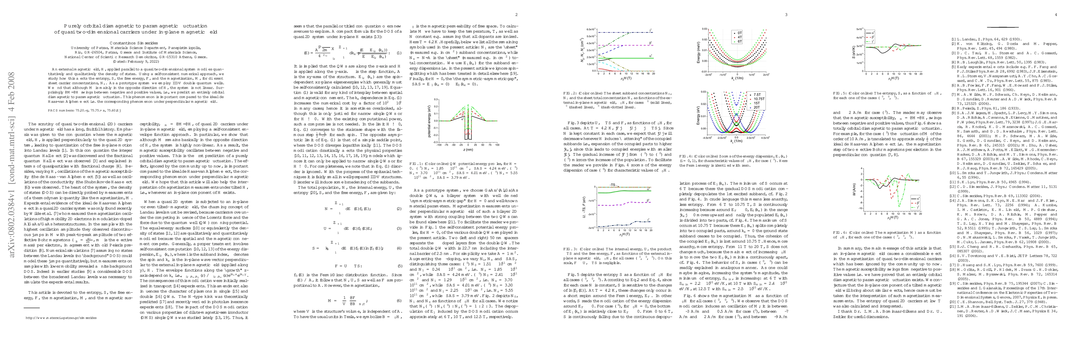 An external magnetic field, $H$, applied parallel to a quasi two-dimensional system modifies quantitatively and qualitatively the density of states. Using a self-consistent numerical approach, we study how this affects the entropy, $S$, the free energy, $F$, and the magnetization, $M$, for different sheet carrier concentrations, $N_s$. As a prototype system we employ III-V double quantum wells. We find that although $M$ is mainly in the opposite direction of $H$, the system is not linear. Surprisingly $\partial M / \partial H$ swings between negative and positive values, i.e., we predict an entirely orbital diamagnetic to paramagnetic fluctuation. This phenomenon is important compared to the ideal de Haas-van Alphen effect i.e. the corresponding phenomenon under perpendicular magnetic field.