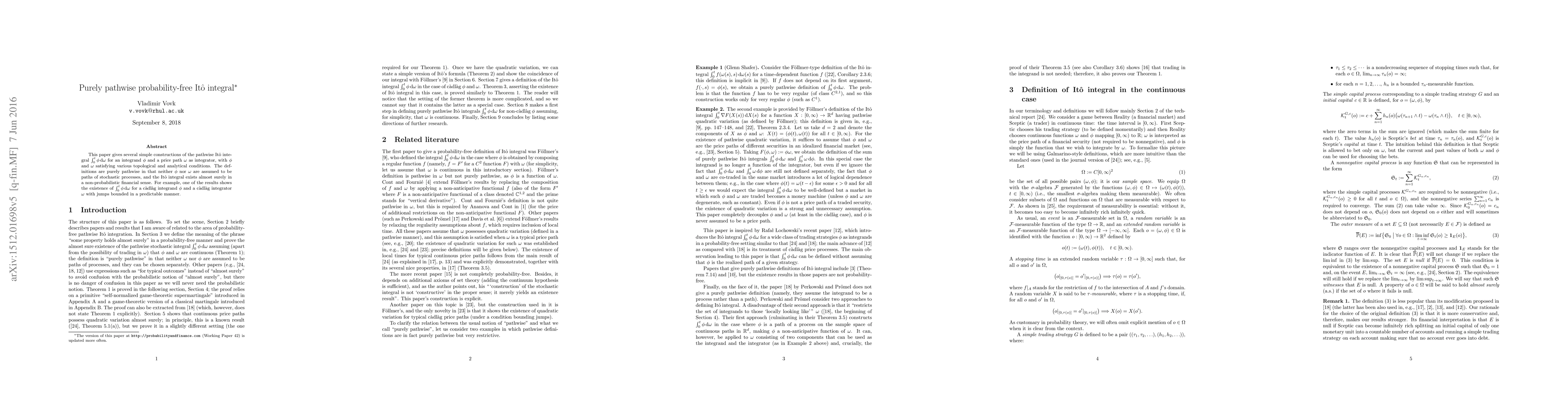 The paper introduces a new approach to pathwise Ito integral, which allows for the existence of integrals without assuming that the integrand or integrator are paths of stochastic processes. This has significant implications for financial modeling and pricing.