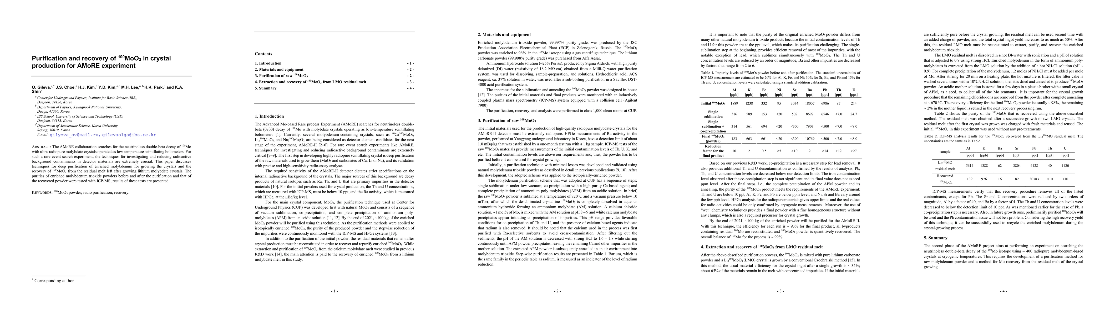 This paper details methods for purifying enriched molybdenum to produce ultra-radiopure molybdate crystals for the AMoRE experiment, which searches for neutrinoless double-beta decay. It also describes the recovery of 100MoO3 from residual melt, with purity tests using ICP-MS showing significant reductions in radioactive contaminants.
