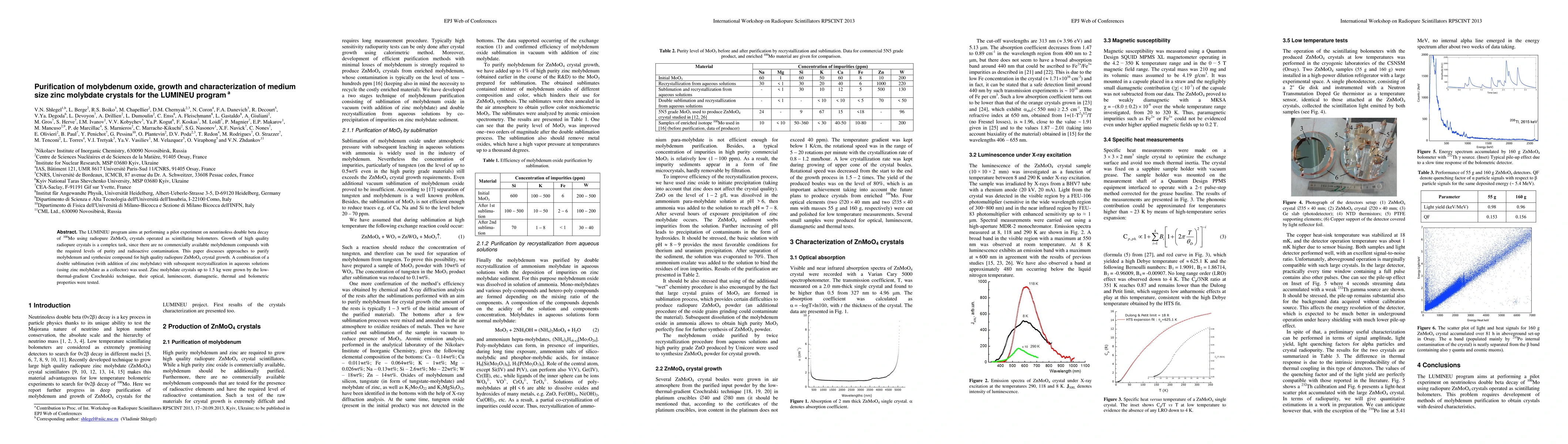 The LUMINEU program aims at performing a pilot experiment on neutrinoless double beta decay of 100Mo using radiopure ZnMoO4 crystals operated as scintillating bolometers. Growth of high quality radiopure crystals is a complex task, since there are no commercially available molybdenum compounds with the required levels of purity and radioactive contamination. This paper discusses approaches to purify molybdenum and synthesize compound for high quality radiopure ZnMoO4 crystal growth. A combination of a double sublimation (with addition of zinc molybdate) with subsequent recrystallization in aqueous solutions (using zinc molybdate as a collector) was used. Zinc molybdate crystals up to 1.5 kg were grown by the low-thermal-gradient Czochralski technique, their optical, luminescent, diamagnetic, thermal and bolometric properties were tested.