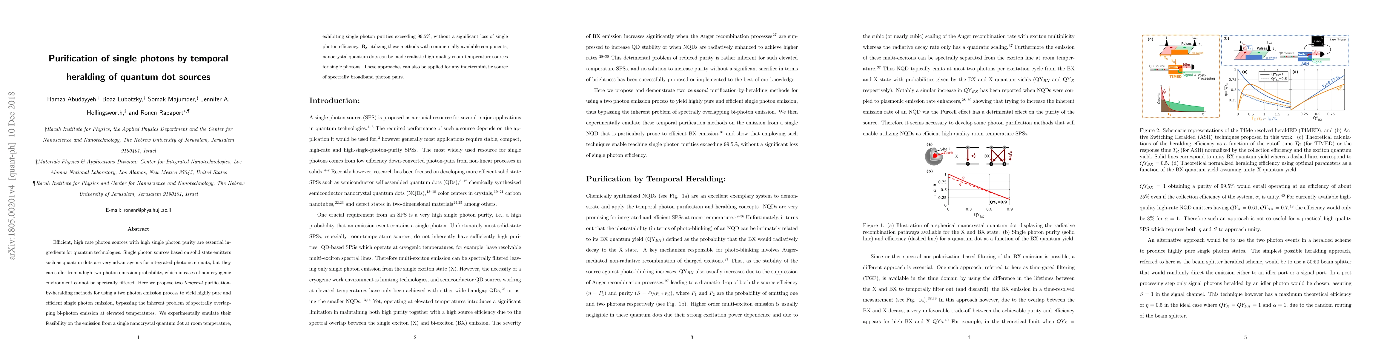This paper proposes temporal purification methods to enhance single photon purity from quantum dot sources, achieving over 99.5% purity without significant efficiency loss. The techniques utilize two-photon emission processes to filter out unwanted photons, applicable to any broadband photon pair source.