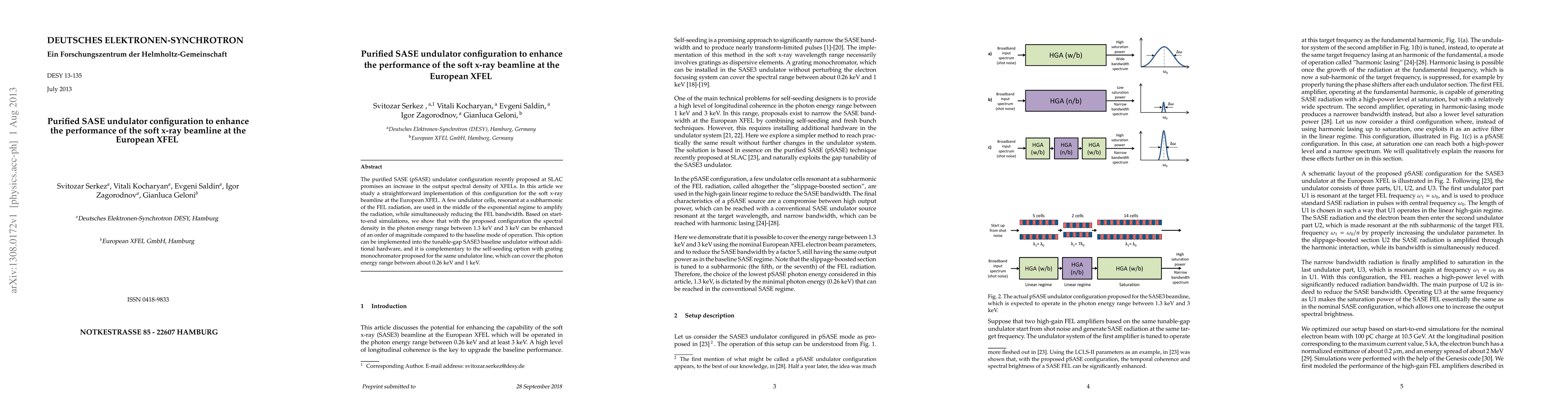 This paper proposes a purified SASE undulator configuration to significantly enhance the performance of the soft x-ray beamline at the European XFEL, achieving a tenfold increase in spectral density between 1.3 keV and 3 keV without requiring additional hardware. The configuration involves using a few resonant undulator cells to amplify the radiation while narrowing the FEL bandwidth.