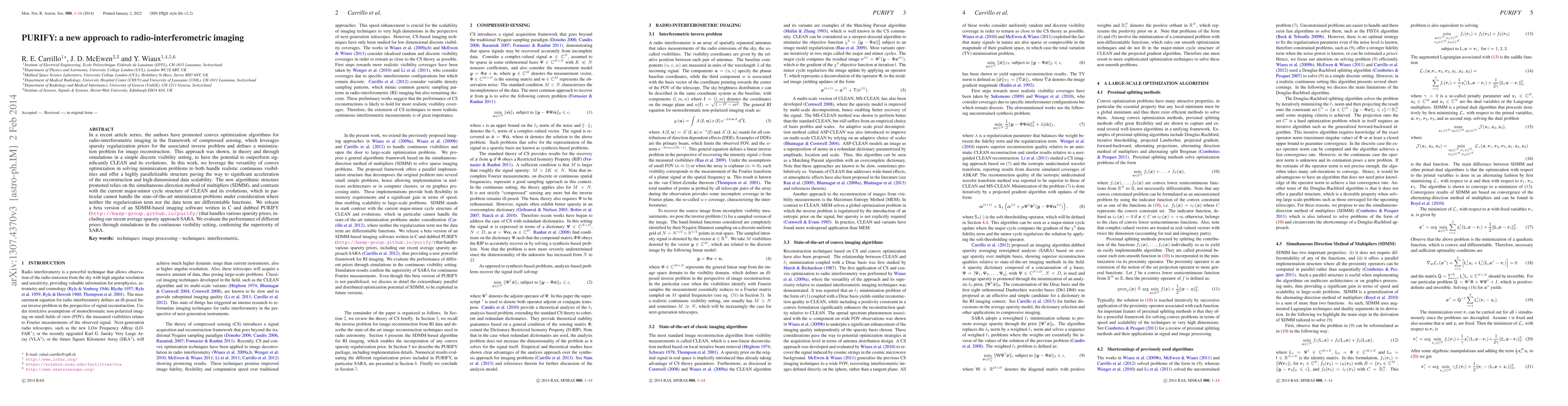 This paper introduces PURIFY, a new convex optimization algorithm based on the simultaneous-direction method of multipliers (SDMM) for radio-interferometric imaging, which outperforms traditional CLEAN methods. The approach is highly parallelizable and scalable, leveraging sparsity regularization for image reconstruction.