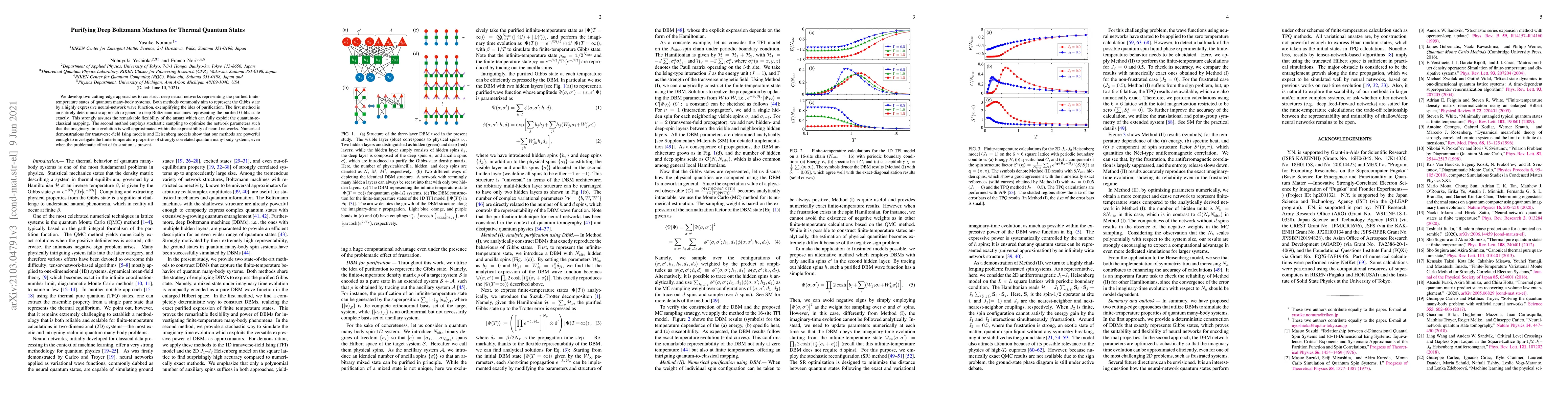 This paper proposes two methods for constructing deep Boltzmann machines to represent the purified finite-temperature states of quantum many-body systems. The first method is deterministic, while the second uses stochastic sampling, both demonstrating effectiveness in modeling transverse-field Ising and Heisenberg models.