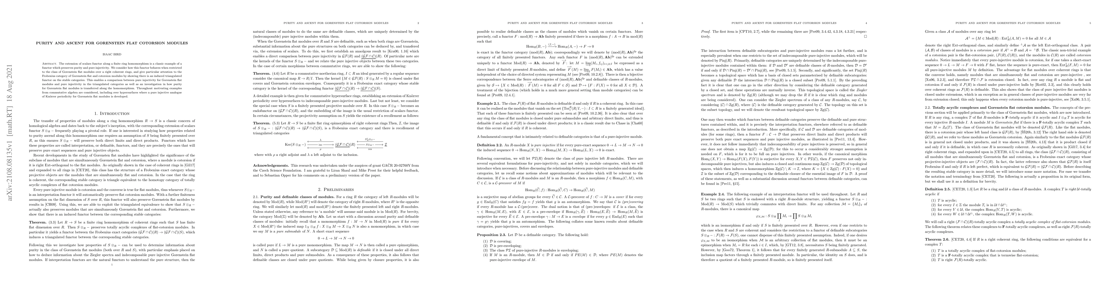 The extension of scalars functor along a finite ring homomorphism is a classic example of a functor which preserves purity and pure injectivity. We consider how this functor behaves when restricted to the class of Gorenstein flat modules over a right coherent rings, and give particular attention to the Frobenius category of Gorenstein flat and cotorsion modules by showing there is an induced triangulated functor on the stable categories. This enables a comparison between pure injectivity for Gorenstein flat modules and pure injectivity in the triangulated categories as well as an investigation in how purity for Gorenstein flat modules is transferred along the homomorphism. Throughout motivating examples from commutative algebra are considered, including over hypersurfaces where a pure injective analogue of Knoerrer periodicity for Gorenstein flat modules is developed.
