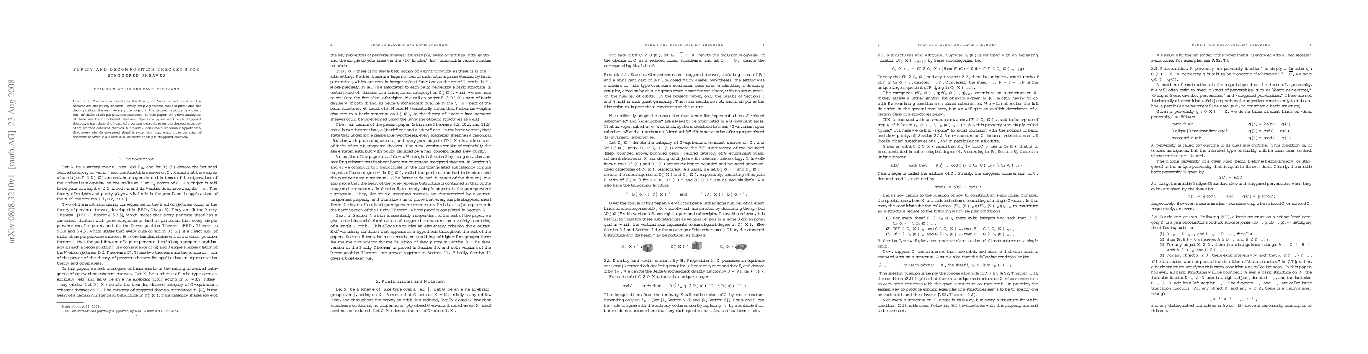 Two major results in the theory of l-adic mixed constructible sheaves are the purity theorem (every simple perverse sheaf is pure) and the decomposition theorem (every pure object in the derived category is a direct sum of shifts of simple perverse sheaves). In this paper, we prove analogues of these results for coherent sheaves. Specificially, we work with staggered sheaves, which form the heart of a certain t-structure on the derived category of equivariant coherent sheaves. We prove, under some reasonable hypotheses, that every simple staggered sheaf is pure, and that every pure complex of coherent sheaves is a direct sum of shifts of simple staggered sheaves.