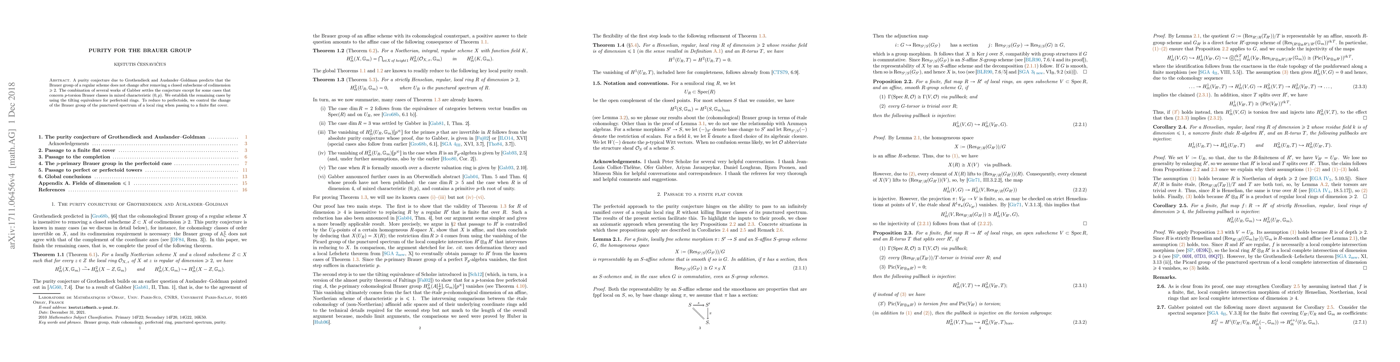 This research paper resolves Grothendieck and Auslander--Goldman's purity conjecture for the Brauer group on regular schemes, except for specific p-torsion cases in mixed characteristic (0, p). The authors achieve this by employing the tilting equivalence for perfectoid rings and examining the Brauer group's behavior during finite flat cover transitions in local rings.