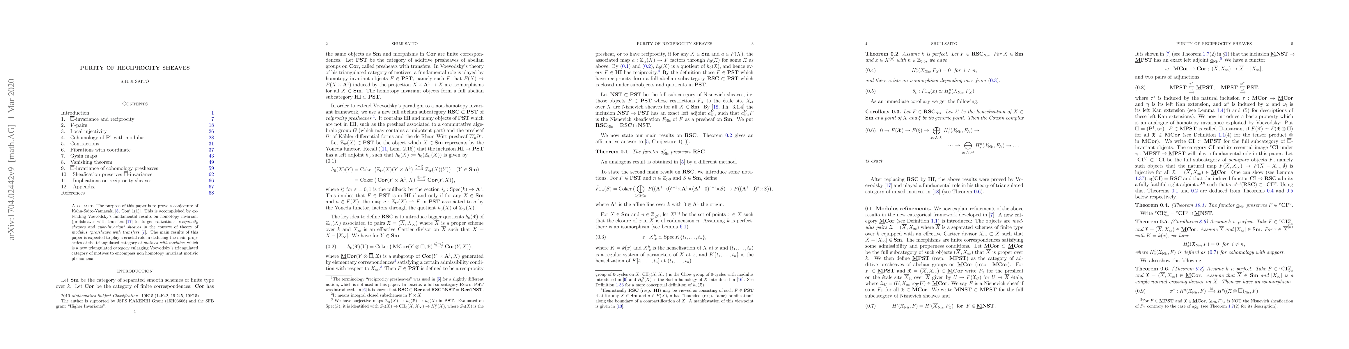 The purpose of this paper is to prove a conjecture on reciprocity sheaves by Kahn-Saito-Yamazaki. This is accomplished by extending Voevodsky's fundamental results on homotopy invariant (pre)sheaves with transfers to its generalizations, reciprocity sheaves and cube-invariant sheaves in the context of theory of modulus (pre)sheave with transfers. The main results of this paper is expected to play a crucial role in deducing the main properties of the triangulated category of motives with modulus, which is a new triangulated category enlarging Voevodsky's triangulated category of motives to encompass non homotopy invariant motivic phenomena.