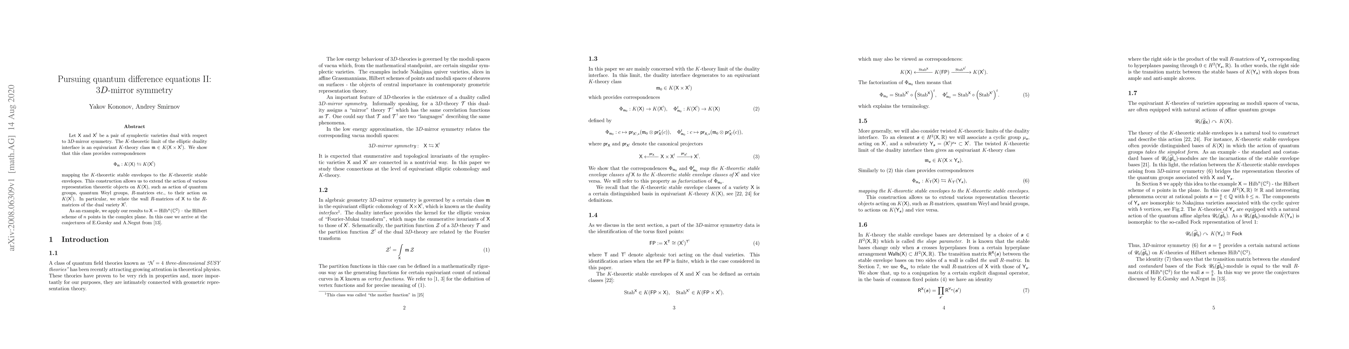 Consider a pair of symplectic varieties dual with respect to 3D-mirror symmetry. The K-theoretic limit of the elliptic duality interface is an equivariant K-theory class of the product. We show that this class provides correspondences in the product mapping the K-theoretic stable envelopes to the K-theoretic stable envelopes. This construction allows us to extend the action of various representation theoretic objects on K(X), such as action of quantum groups, quantum Weyl groups, R-matrices etc., to their action on the K-theory of the variety dual to X. In particular, we relate the wall R-matrices to the R-matrices of the dual variety. As an example, we apply our results to the Hilbert scheme of n points in the complex plane. In this case we arrive at the conjectures of E.Gorsky and A.Negut.