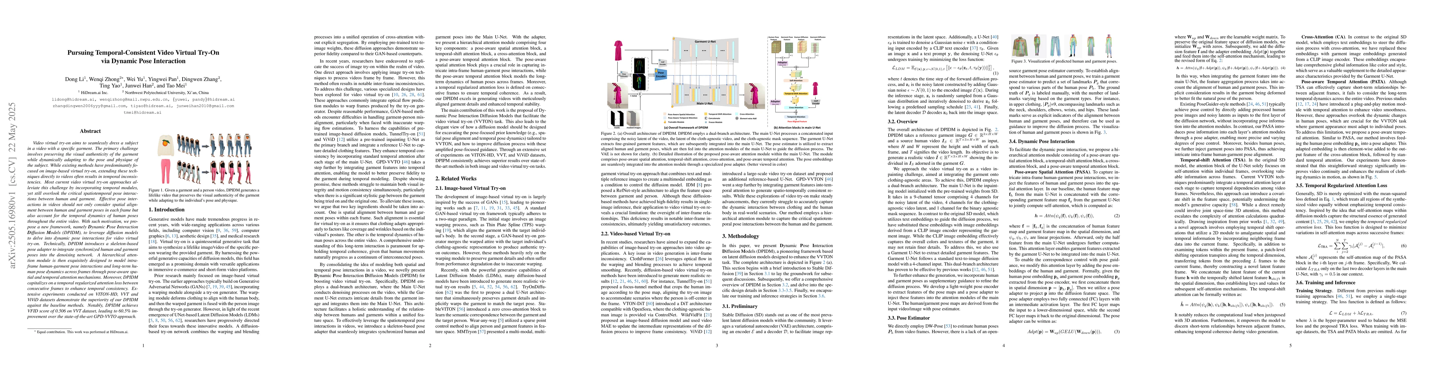 This research is significant as it tackles the challenge of temporal-consistent video virtual try-on, which is crucial for applications like online shopping and fashion visualization. By leveraging diffusion models and dynamic pose interactions, DPIDM provides a novel solution to maintain visual authenticity while adapting to the subject's pose and physique in videos.