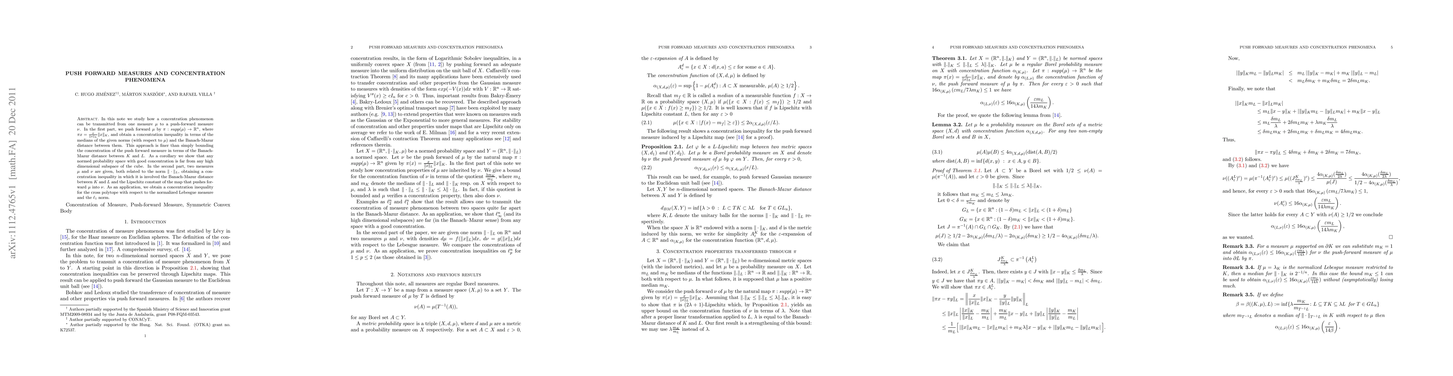 This paper investigates how concentration phenomena in a measure $\mu$ can be transmitted to its push-forward measure $\nu$ via a specific map. It establishes concentration inequalities involving the medians of norms and the Banach-Mazur distance, showing that good concentration in normed probability spaces implies distance from high-dimensional subspaces of the cube. Additionally, it provides a concentration inequality for the cross polytope under the normalized Lebesgue measure and $\ell_1$ norm.