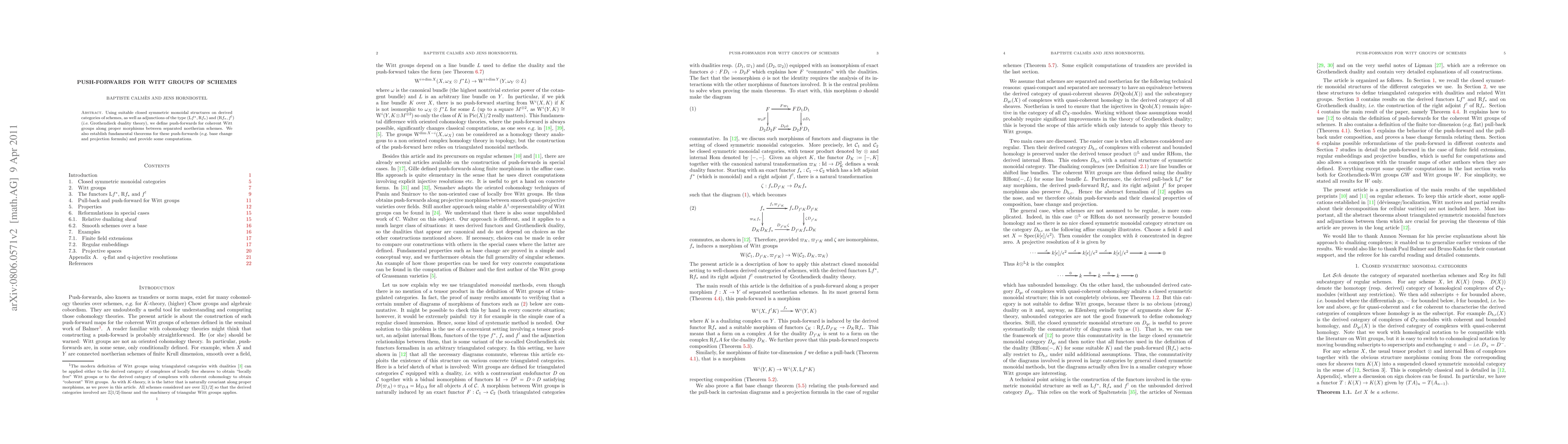 This paper introduces push-forwards for Witt groups of schemes via proper morphisms, employing Grothendieck duality theory, and applies these to derived categories of schemes using results from tensor-triangulated closed categories.