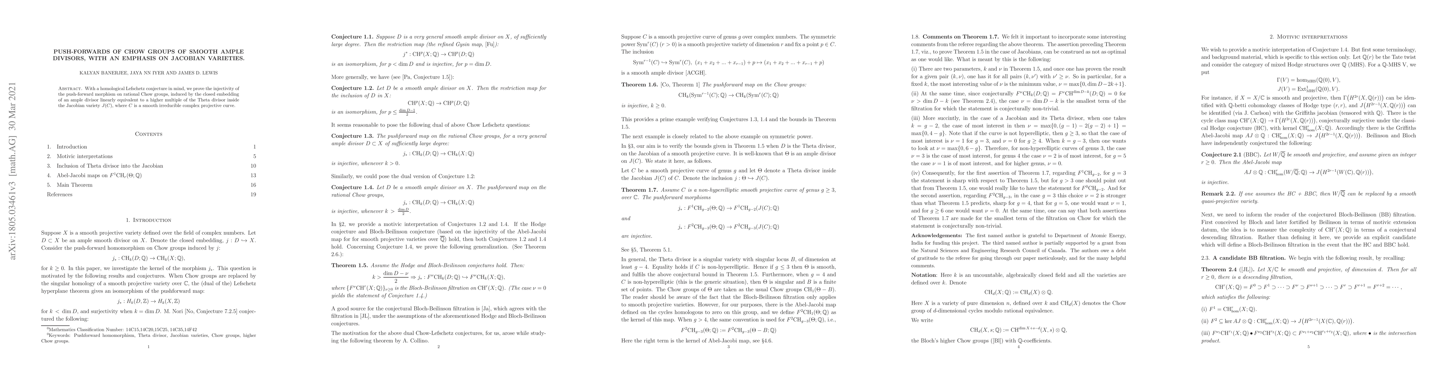 We introduce a homological Lefschetz conjecture on (rational) Chow groups, which can be deduced from some well known conjectures, and illustrate it by a series of key examples. We then prove the injectivity of the push-forward morphism on Chow groups, induced by the closed embedding of the Theta divisor in it's Jacobian $J(C)$. Here $C$ is a smooth irreducible complex projective curve.