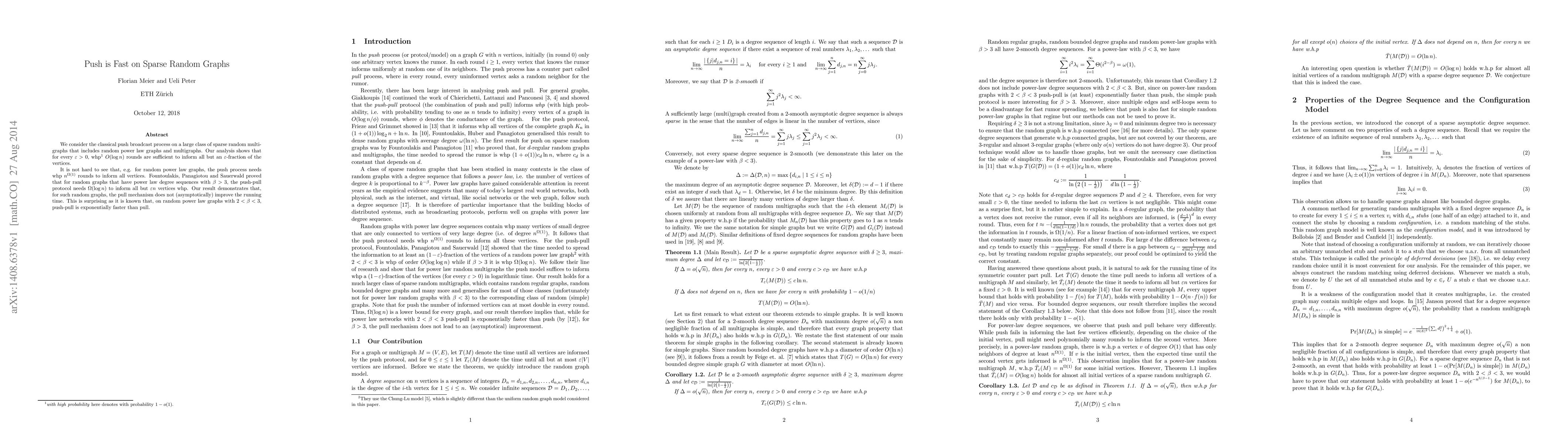 Summary: This paper demonstrates that the push broadcast process requires $O(\log n)$ rounds to inform all but an $\varepsilon$-fraction of vertices in sparse random multigraphs, including random power law graphs, while highlighting that the pull mechanism does not improve this efficiency for graphs with $\beta>3$.
