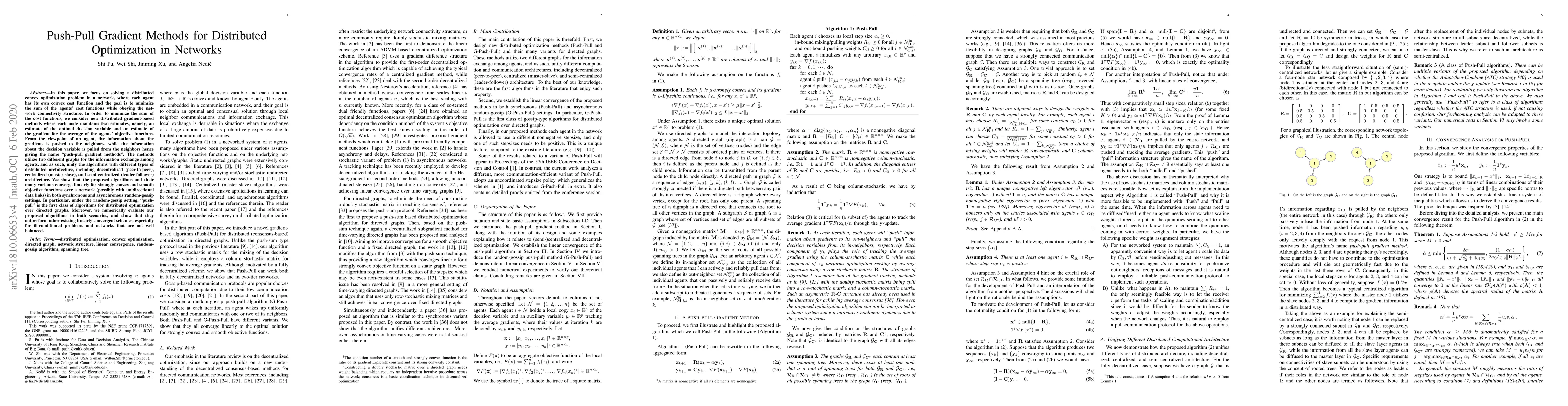 This paper introduces "push-pull gradient methods" for solving distributed convex optimization problems in networks, where each agent maintains estimates of optimal variables and gradients. The methods unify decentralized, centralized, and semi-centralized architectures, and are shown to linearly converge for strongly convex and smooth functions, outperforming existing schemes, especially in ill-conditioned and unbalanced networks.