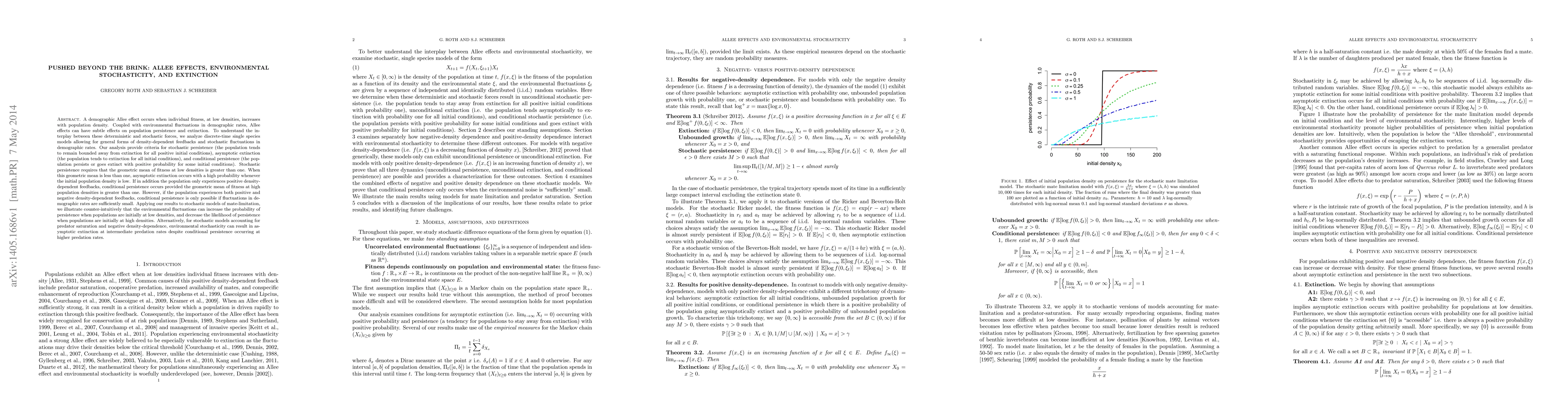 This paper examines how demographic Allee effects interact with environmental stochasticity to influence population persistence and extinction. It finds that stochastic persistence requires a fitness geometric mean greater than one at low densities, while fluctuations in demographic rates can paradoxically increase persistence in low-density populations but lead to extinction in high-density populations.