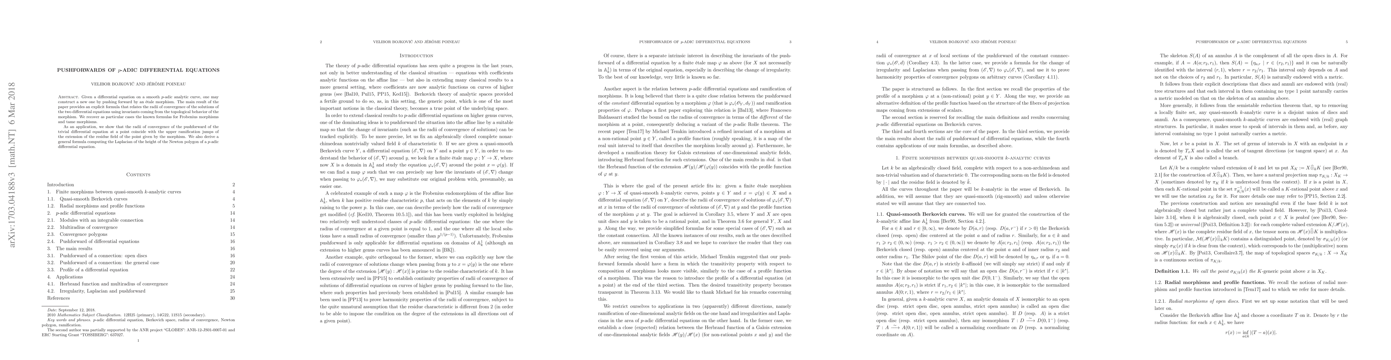 This paper develops an explicit formula for the relationship between the radii of convergence of solutions to $p$-adic differential equations before and after an étale morphism, highlighting known cases for Frobenius and tame morphisms. It also connects the pushforward trivial differential equation's convergence with upper ramification jumps and provides a general formula for the Laplacian of the height of the Newton polygon.