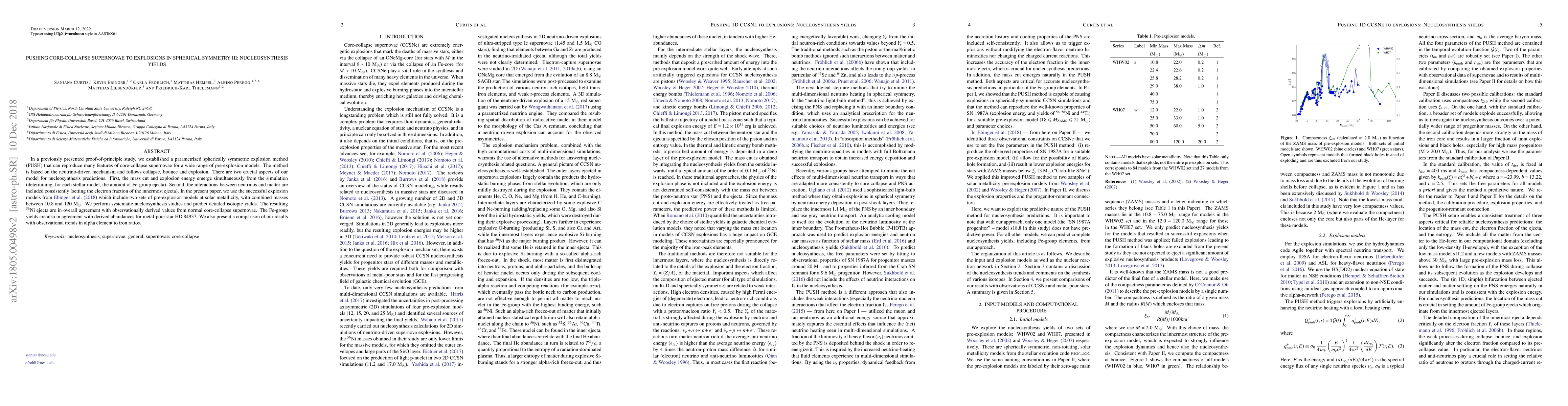 This paper extends a parametrized spherical explosion method (PUSH) to predict nucleosynthesis yields from core-collapse supernovae, showing agreement with observed $^{56}$Ni and Fe-group ejecta. The method consistently incorporates neutrino-driven explosion mechanisms and interactions, providing detailed isotopic yields for a range of stellar masses.