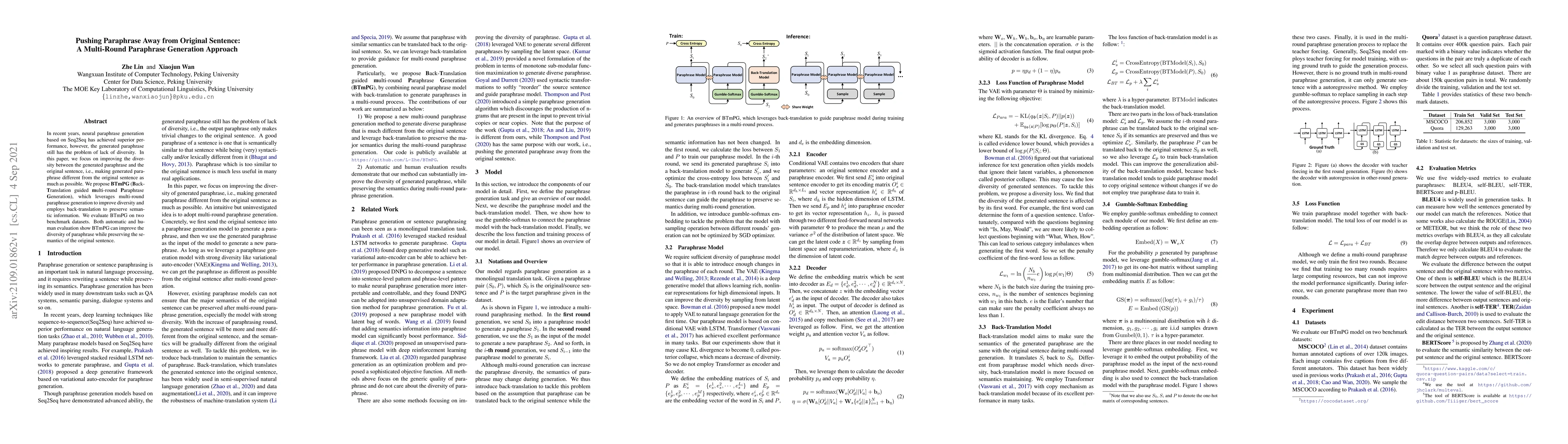 This paper introduces BTmPG, a multi-round paraphrase generation approach that uses back-translation to enhance the diversity of generated paraphrases while preserving the original sentence's semantics. Evaluations on benchmark datasets demonstrate its effectiveness in achieving diverse paraphrases.