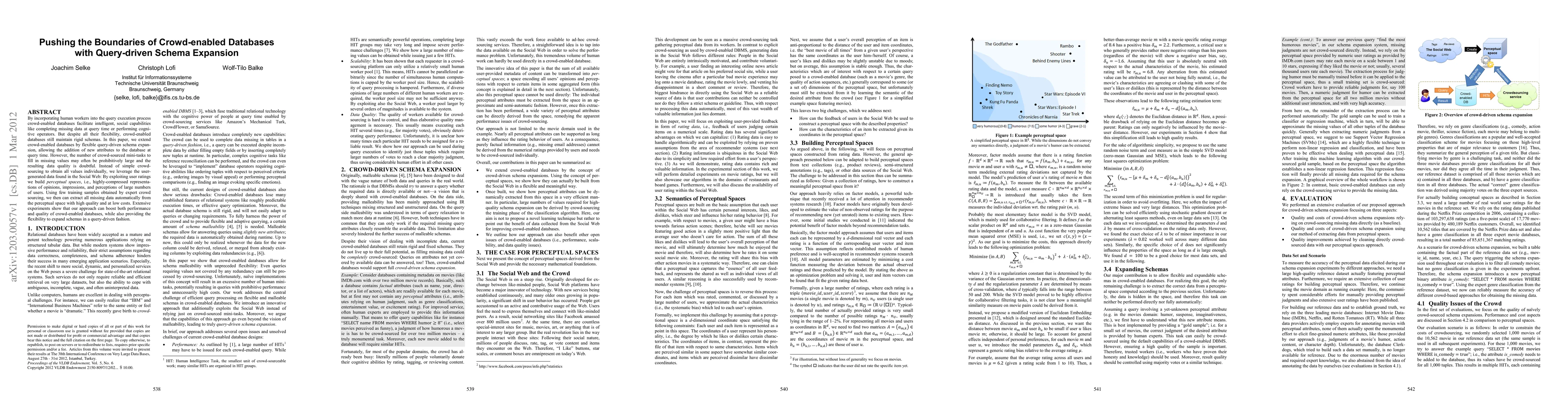 This paper proposes a method for flexible query-driven schema expansion in crowd-enabled databases, leveraging user-generated data from the Social Web to fill in missing values efficiently and with high quality. The approach uses perceptual spaces built from user ratings to extract missing data automatically, enhancing both performance and data quality.