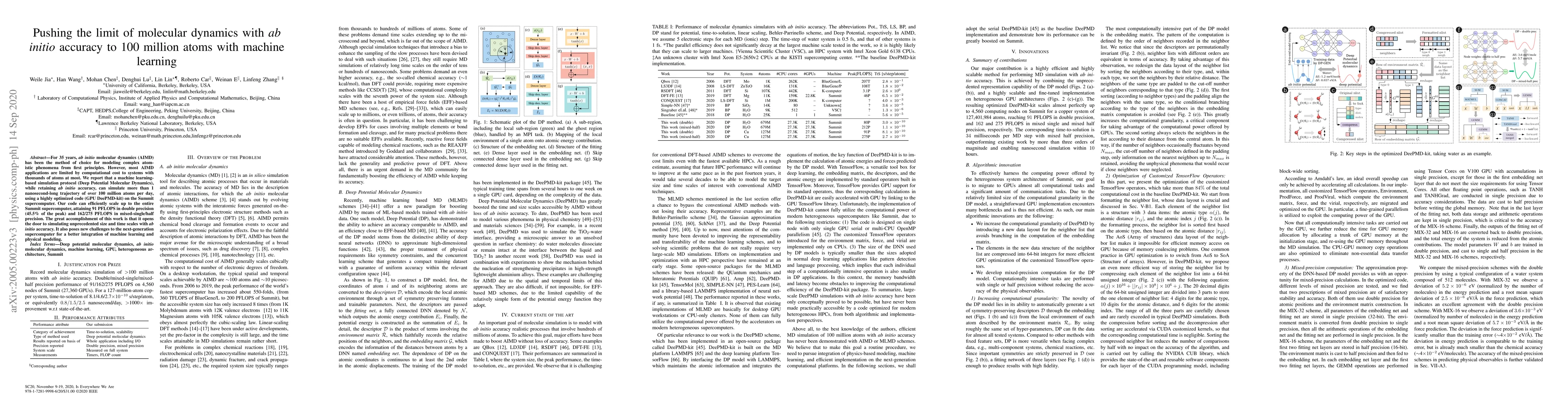 This paper demonstrates a machine learning-based protocol that enables ab initio molecular dynamics simulations of over 100 million atoms per day, achieving unprecedented scales with ab initio accuracy using the GPU DeePMD-kit on the Summit supercomputer. This breakthrough opens new possibilities for large-scale simulations but also poses challenges for future supercomputers to better integrate machine learning and physical modeling.