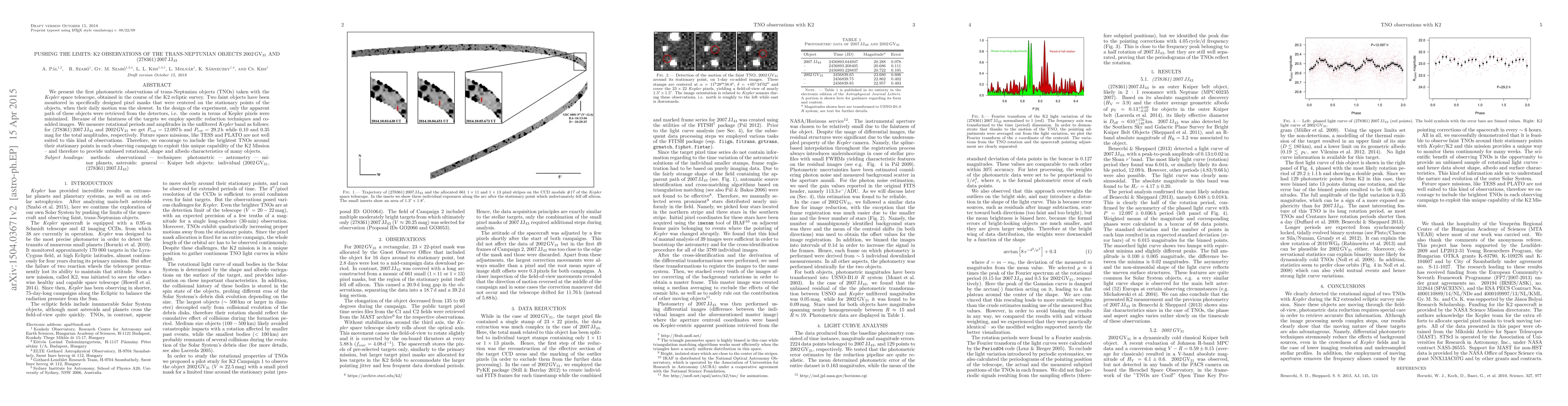 This paper reports the first photometric observations of trans-Neptunian objects (TNOs) 2002 GV31 and (278361) 2007 JJ43 using the K2 space telescope, revealing their rotational periods and amplitudes. The study highlights the unique observational capability of the K2 mission for faint objects and suggests future missions should focus on the brightest TNOs for comprehensive analysis.