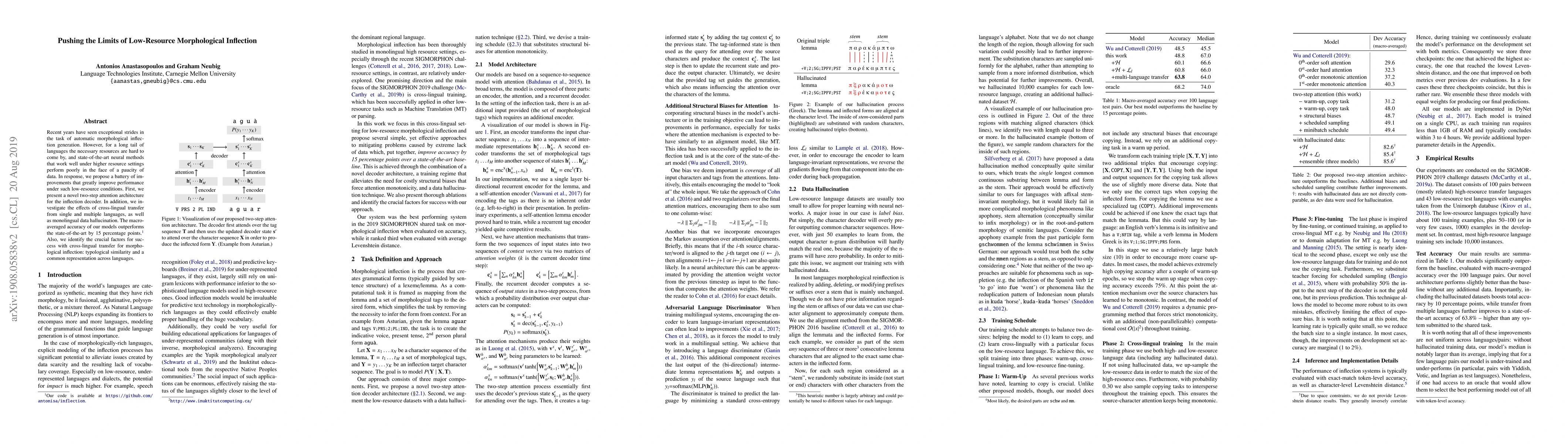 Recent years have seen exceptional strides in the task of automatic morphological inflection generation. However, for a long tail of languages the necessary resources are hard to come by, and state-of-the-art neural methods that work well under higher resource settings perform poorly in the face of a paucity of data. In response, we propose a battery of improvements that greatly improve performance under such low-resource conditions. First, we present a novel two-step attention architecture for the inflection decoder. In addition, we investigate the effects of cross-lingual transfer from single and multiple languages, as well as monolingual data hallucination. The macro-averaged accuracy of our models outperforms the state-of-the-art by 15 percentage points. Also, we identify the crucial factors for success with cross-lingual transfer for morphological inflection: typological similarity and a common representation across languages.