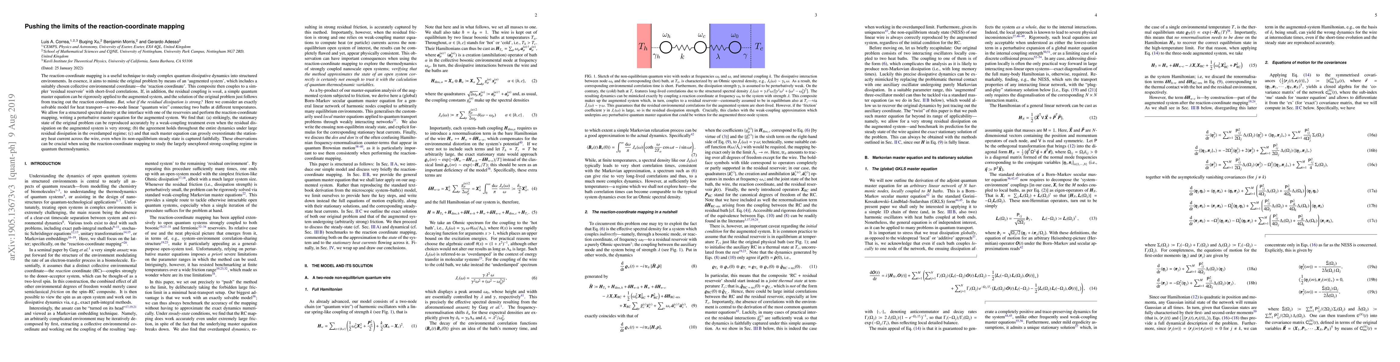 The reaction-coordinate mapping is a useful technique to study complex quantum dissipative dynamics into structured environments. In essence, it aims to mimic the original problem by means of an 'augmented system', which includes a suitably chosen collective environmental coordinate---the 'reaction coordinate'. This composite then couples to a simpler 'residual reservoir' with short-lived correlations. If, in addition, the residual coupling is weak, a simple quantum master equation can be rigorously applied to the augmented system, and the solution of the original problem just follows from tracing out the reaction coordinate. But, what if the residual dissipation is strong? Here we consider an exactly solvable model for heat transport---a two-node linear "quantum wire" connecting two baths at different temperatures. We allow for a structured spectral density at the interface with one of the reservoirs and perform the reaction-coordinate mapping, writing a perturbative master equation for the augmented system. We find that: (a) strikingly, the stationary state of the original problem can be reproduced accurately by a weak-coupling treatment even when the residual dissipation on the augmented system is very strong; (b) the agreement holds throughout the entire dynamics under large residual dissipation in the overdamped regime; (c) and that such master equation can grossly overestimate the stationary heat current across the wire, even when its non-equilibrium steady state is captured faithfully. These observations can be crucial when using the reaction-coordinate mapping to study the largely unexplored strong-coupling regime in quantum thermodynamics.