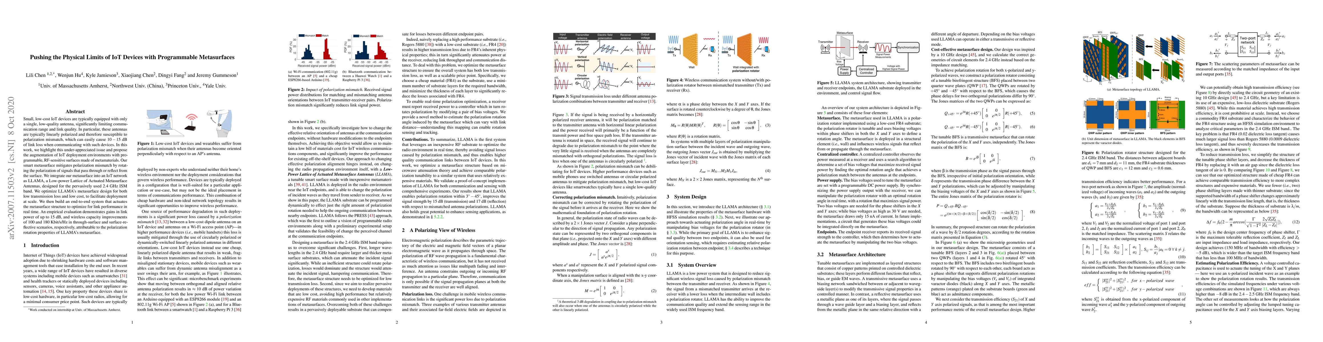 This paper addresses the communication limitations of low-cost IoT devices by proposing the use of programmable metasurfaces to mitigate polarization mismatch. The developed LAMA system optimizes link performance in real time, demonstrating significant improvements in link power and wireless capacity.