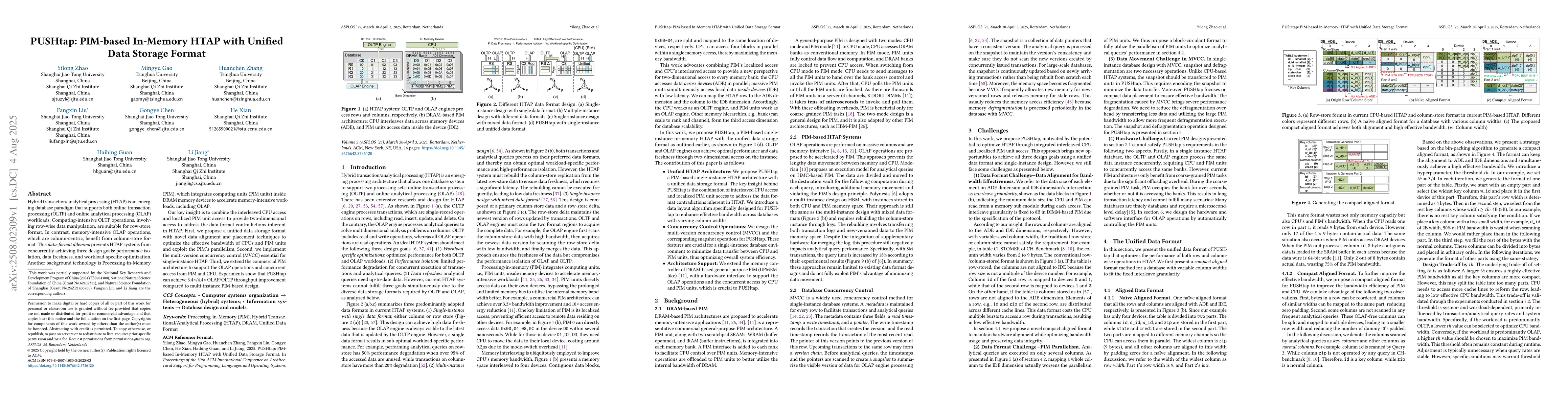 Hybrid transaction/analytical processing (HTAP) is an emerging database paradigm that supports both online transaction processing (OLTP) and online analytical processing (OLAP) workloads. Computing-intensive OLTP operations, involving row-wise data manipulation, are suitable for row-store format. In contrast, memory-intensive OLAP operations, which are column-centric, benefit from column-store format. This \emph{data-format dilemma} prevents HTAP systems from concurrently achieving three design goals: performance isolation, data freshness, and workload-specific optimization. Another background technology is Processing-in-Memory (PIM), which integrates computing units (PIM units) inside DRAM memory devices to accelerate memory-intensive workloads, including OLAP. Our key insight is to combine the interleaved CPU access and localized PIM unit access to provide two-dimensional access to address the data format contradictions inherent in HTAP. First, we propose a unified data storage format with novel data alignment and placement techniques to optimize the effective bandwidth of CPUs and PIM units and exploit the PIM's parallelism. Second, we implement the multi-version concurrency control (MVCC) essential for single-instance HTAP. Third, we extend the commercial PIM architecture to support the OLAP operations and concurrent access from PIM and CPU. Experiments show that PUSHtap can achieve 3.4\texttimes{}/4.4\texttimes{} OLAP/OLTP throughput improvement compared to multi-instance PIM-based design.