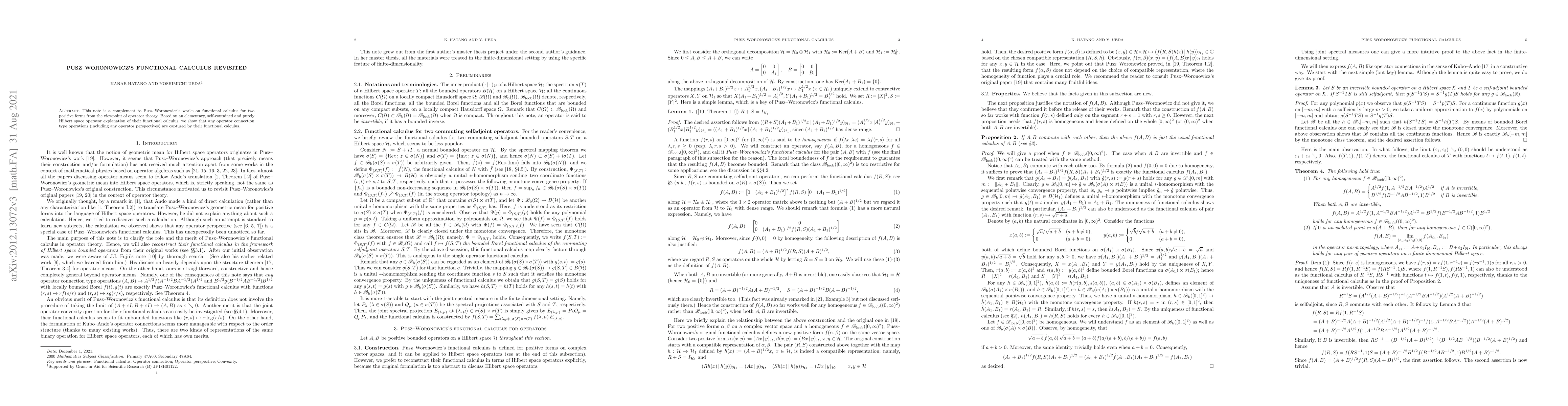 This paper revisits Pusz--Woronowicz's functional calculus for two positive forms, providing a Hilbert space operator perspective that demonstrates its comprehensiveness in capturing operator connection type operations. The approach is elementary, self-contained, and purely based on operator theory.