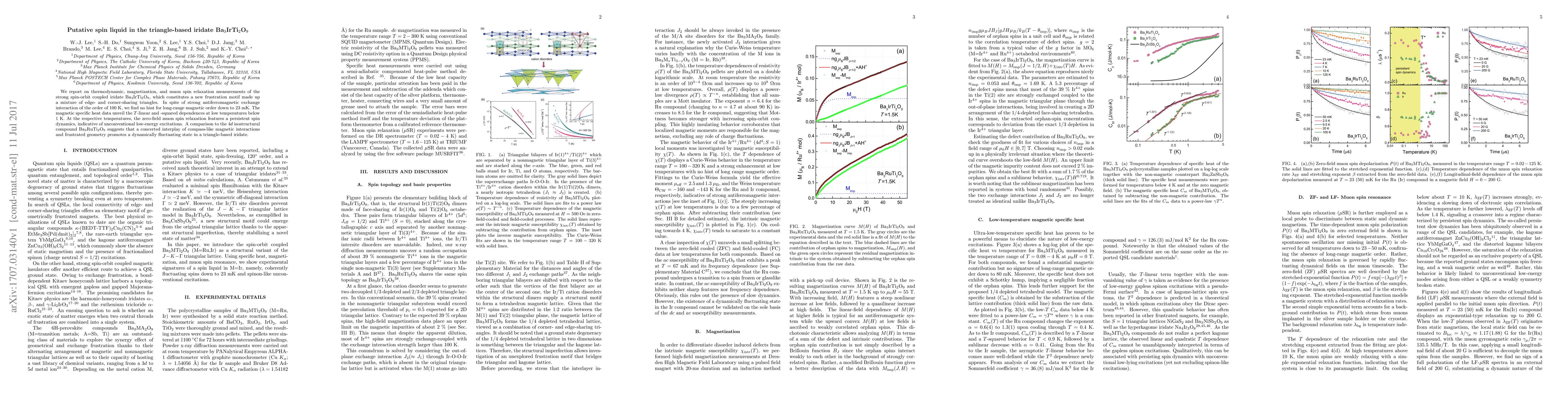 The paper presents a detailed study of magnetic properties using thermodynamic, magnetization, and muon spin relaxation measurements, revealing a putative spin liquid state in Ba$_3$IrTi$_2$O$_9$.