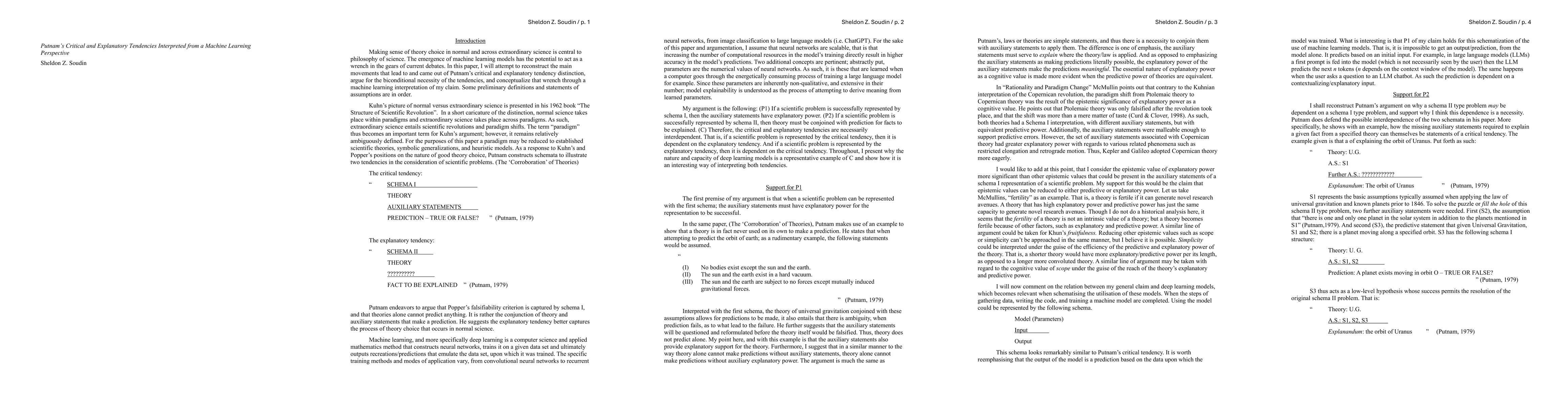 This paper reconstructs Putnam's distinction between critical and explanatory tendencies in scientific theory choice and argues for their biconditional necessity, proposing a machine learning perspective to reinterpret and potentially advance these concepts in the philosophy of science.