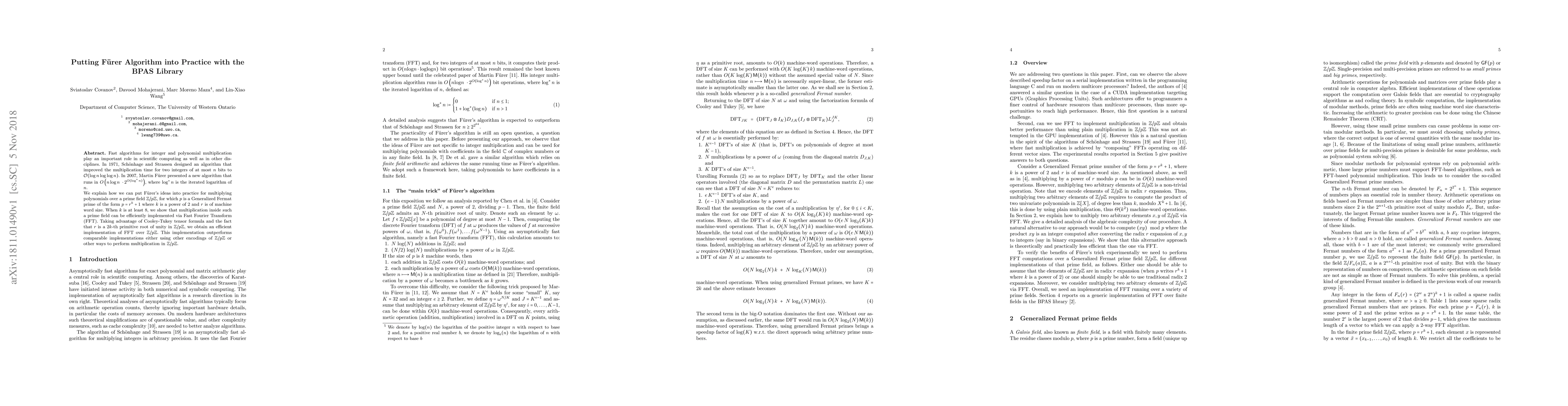 Researchers have developed an efficient method for multiplying polynomials over a prime field using Furer's algorithm and Fast Fourier Transform (FFT), outperforming comparable implementations in terms of speed and efficiency.