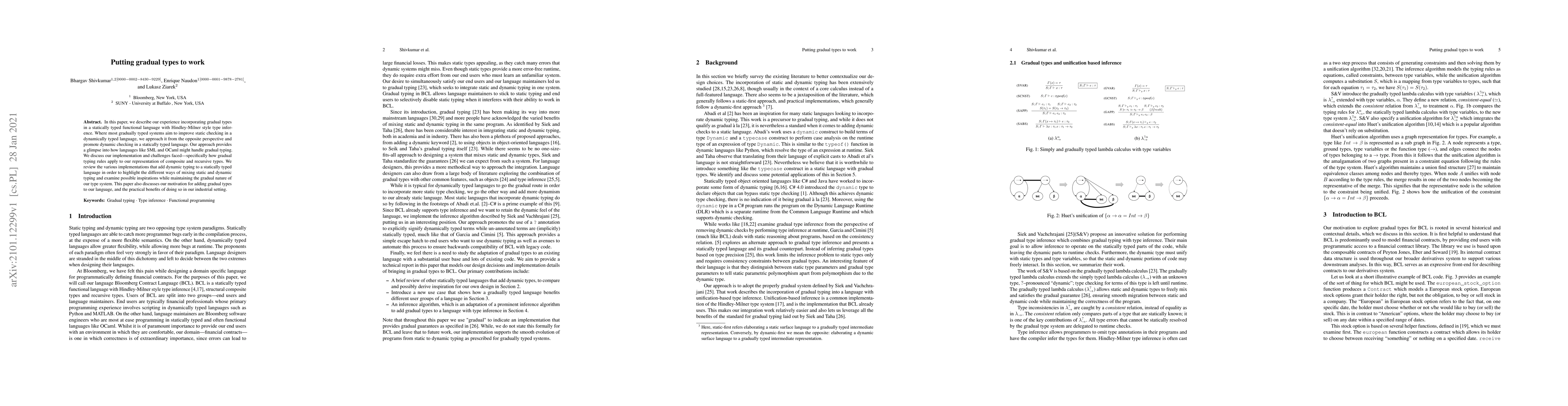 This paper explores integrating gradual types into a statically typed functional language with Hindley-Milner type inference, aiming to enhance dynamic checking. It discusses implementation challenges and practical benefits, particularly in an industrial context, while reviewing other approaches to mixing static and dynamic typing.