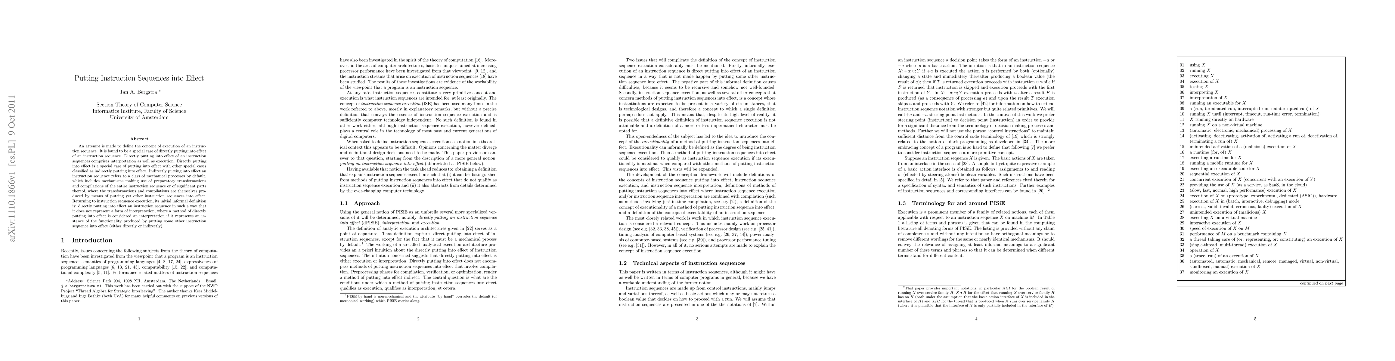 Summary: This paper explores the concept of executing an instruction sequence, defining it as a specific instance of directly putting an instruction sequence into effect, which includes interpretation and execution, and distinguishes it from indirect methods of effectuation.