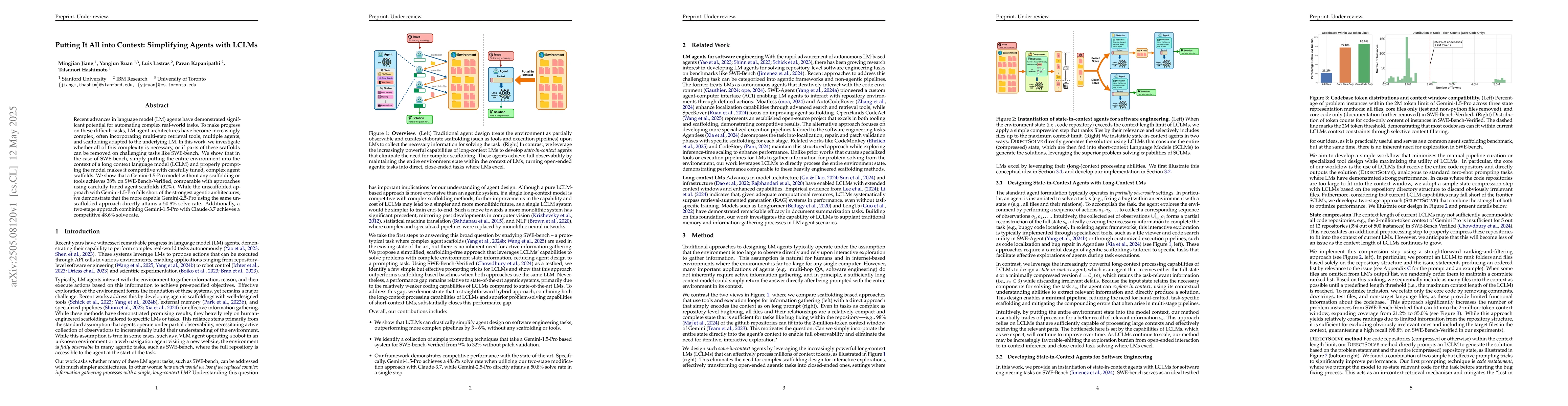 Researchers simplified complex language model agents by removing unnecessary scaffolding, achieving competitive results on a challenging task with just a long context language model and proper prompting. A more capable agent achieved a 50.8% solve rate using the same approach.