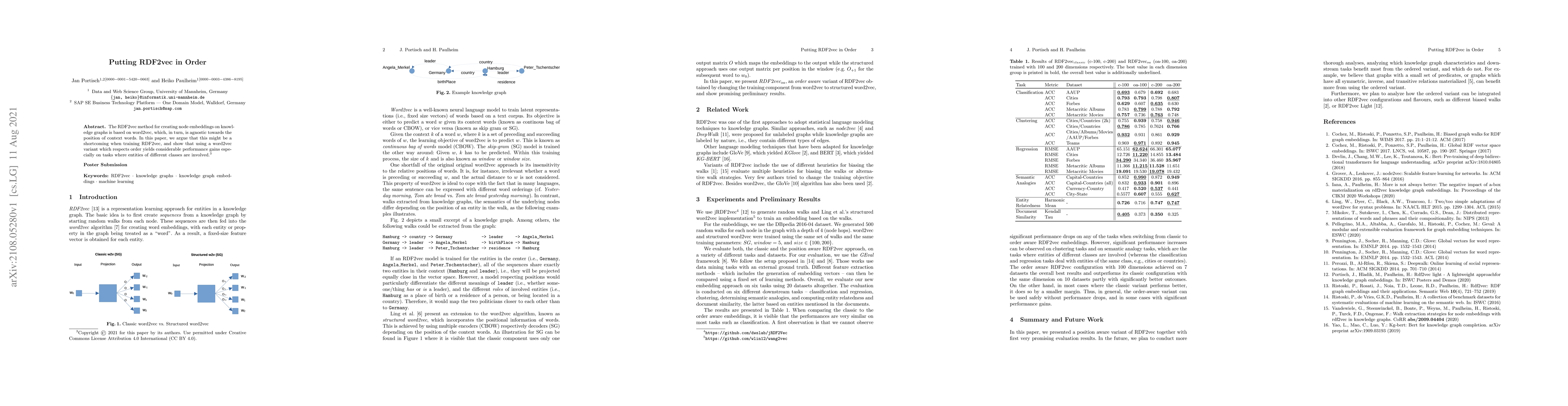 The RDF2vec method for creating node embeddings on knowledge graphs is based on word2vec, which, in turn, is agnostic towards the position of context words. In this paper, we argue that this might be a shortcoming when training RDF2vec, and show that using a word2vec variant which respects order yields considerable performance gains especially on tasks where entities of different classes are involved.