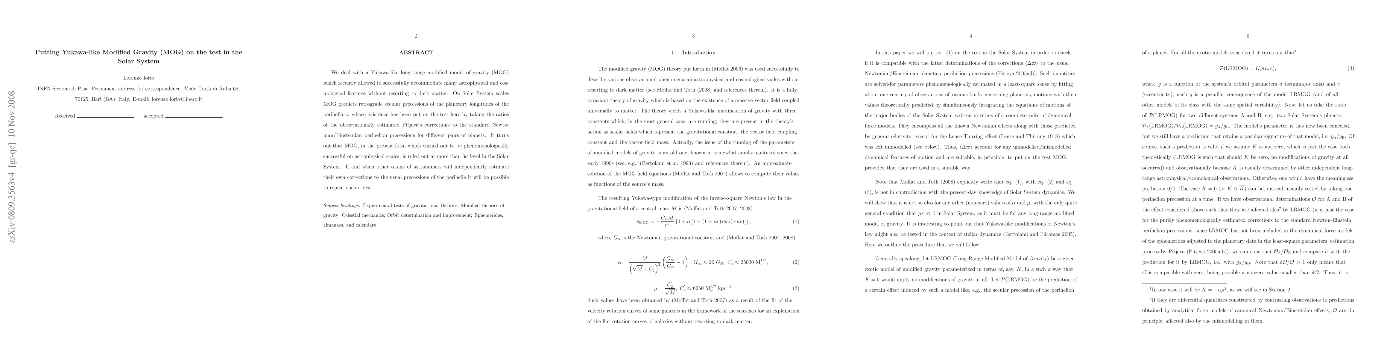 A study tests a modified gravity model against observations in our Solar System, finding that it fails to predict planetary orbital precessions at more than 3sigma level. The results suggest the need for further investigation of this alternative theory.