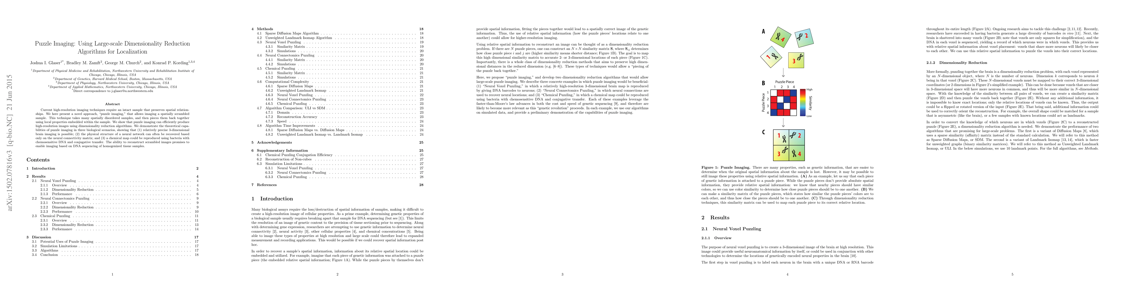 Current high-resolution imaging techniques require an intact sample that preserves spatial relationships. We here present a novel approach, "puzzle imaging," that allows imaging a spatially scrambled sample. This technique takes many spatially disordered samples, and then pieces them back together using local properties embedded within the sample. We show that puzzle imaging can efficiently produce high-resolution images using dimensionality reduction algorithms. We demonstrate the theoretical capabilities of puzzle imaging in three biological scenarios, showing that (1) relatively precise 3-dimensional brain imaging is possible; (2) the physical structure of a neural network can often be recovered based only on the neural connectivity matrix; and (3) a chemical map could be reproduced using bacteria with chemosensitive DNA and conjugative transfer. The ability to reconstruct scrambled images promises to enable imaging based on DNA sequencing of homogenized tissue samples.