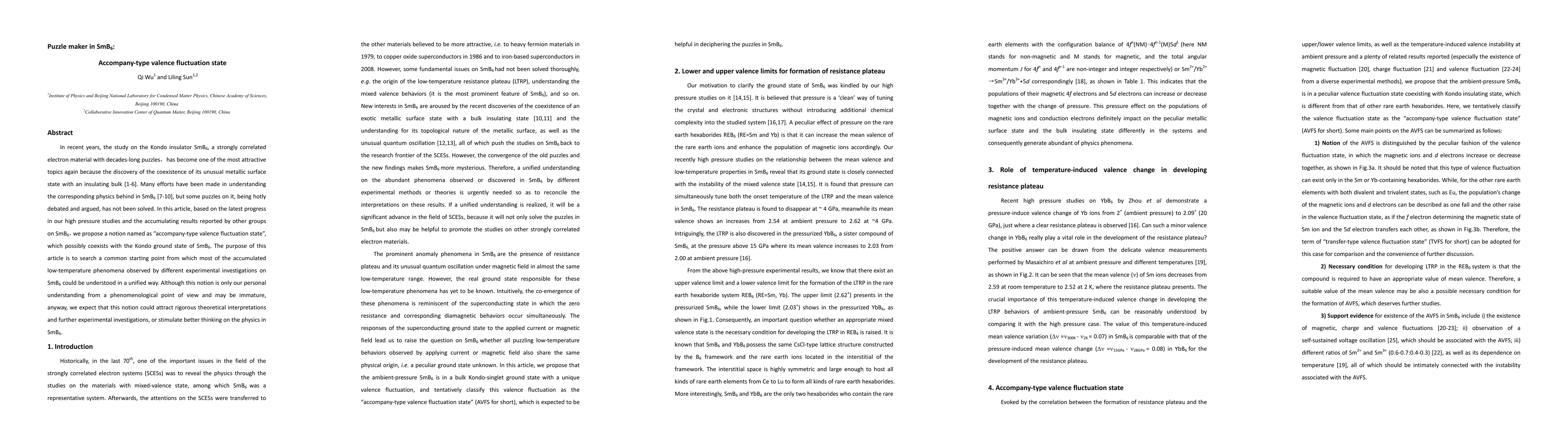 This paper proposes a new concept called "accompany-type valence fluctuation state" to potentially explain various low-temperature phenomena in the Kondo insulator SmB6, suggesting a unified understanding of its complex physics. The authors hope this idea will inspire further theoretical and experimental research.
